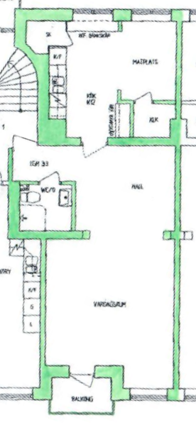 Övrigt: Balkong. Parkettgolv i hall och vardagsrum. Kaklat badrum.