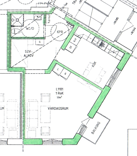 Övrigt: Fin 1,5:a med sovalkov och balkong. Parkettgolv i hela lägenheten. Kaklat badrum.